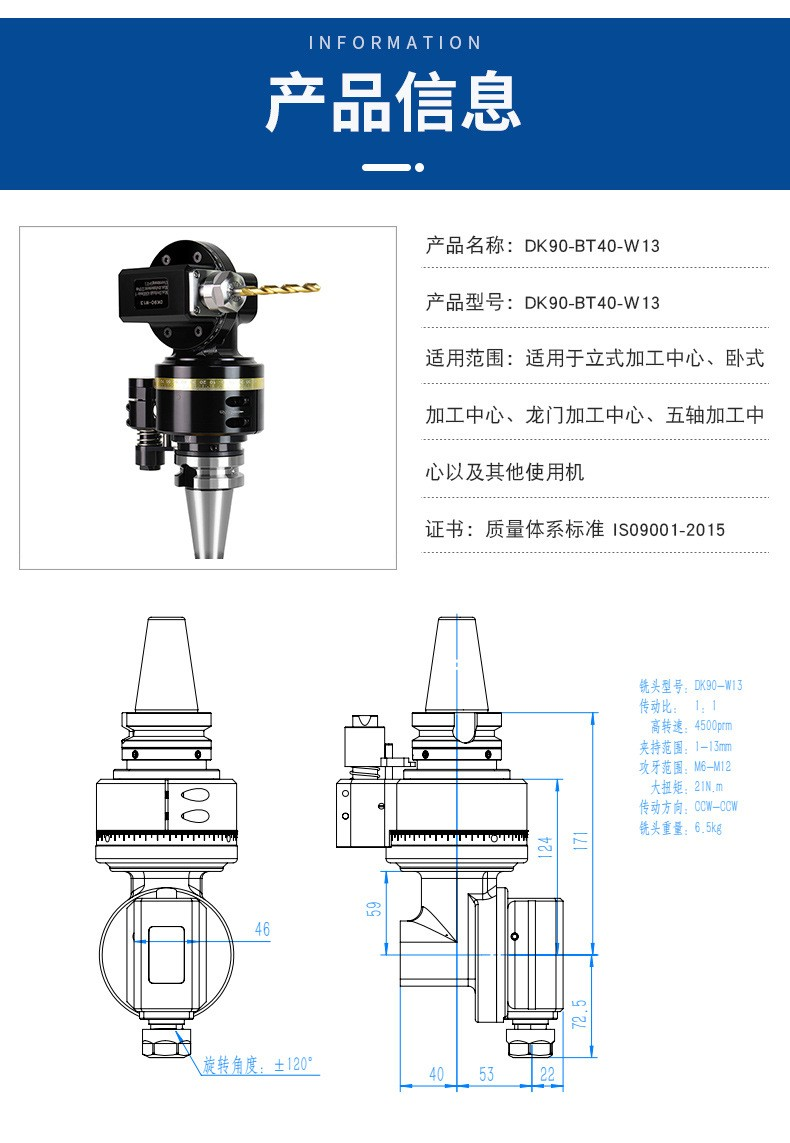 BT40-W13萬(wàn)向角度頭適用于BT40主軸加工中心機(jī)床。