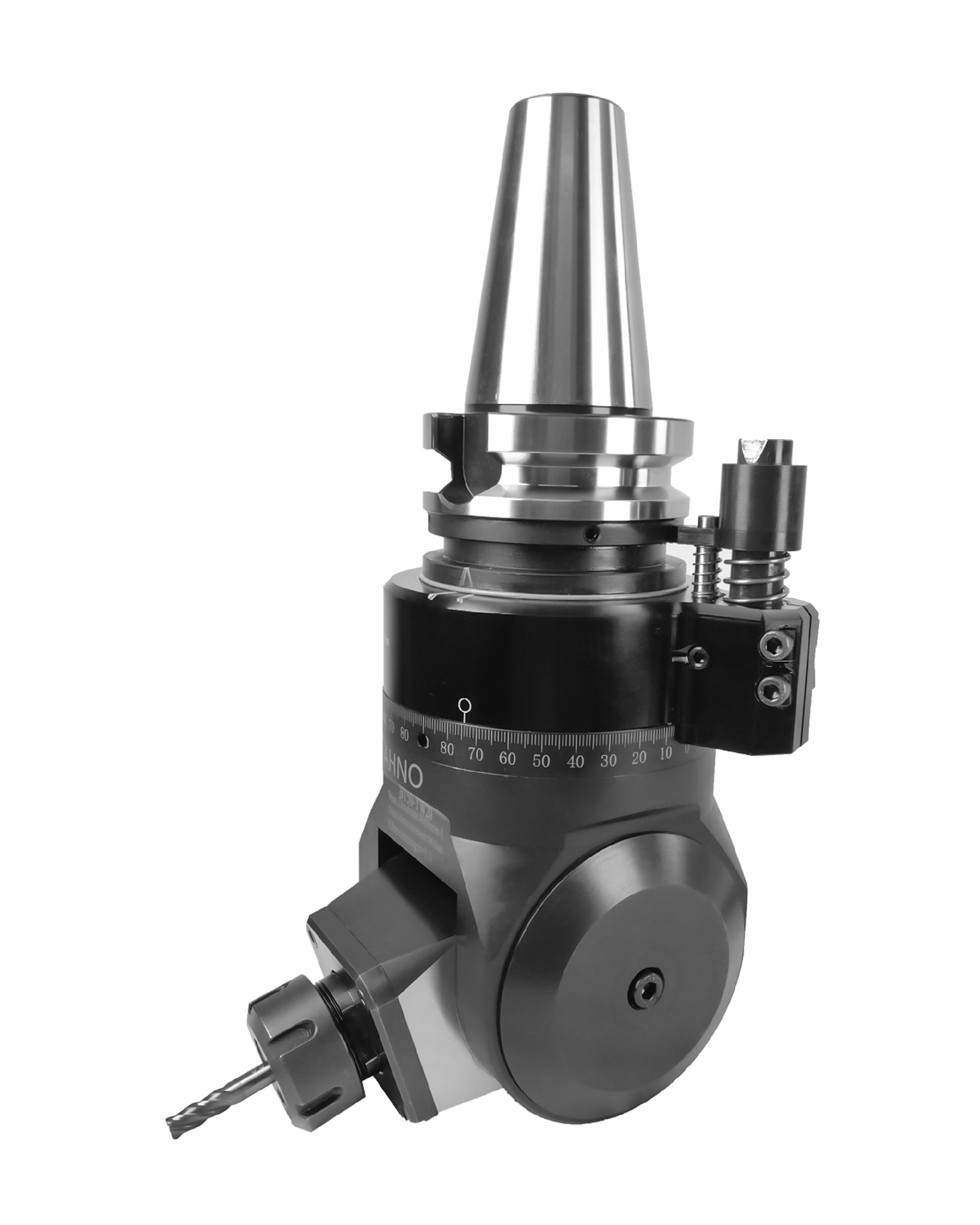蘇州刀克精工科技有限公司設(shè)計(jì)開發(fā)的萬(wàn)向角度頭有兩種形式:一種類型為偏置型萬(wàn)向角度頭,另一種為Y型萬(wàn)向角度頭。偏置型萬(wàn)向角度頭輸出軸與機(jī)床主軸不在同一中心線上。有點(diǎn)是重量輕,可以入刀庫(kù)。缺點(diǎn)是剛性扭矩比較小。由于是偏置型結(jié)構(gòu),有可能在加工某些狹窄結(jié)構(gòu)產(chǎn)品時(shí)發(fā)生干涉。Y型結(jié)構(gòu)萬(wàn)向銑頭優(yōu)點(diǎn)是輸出軸與主軸中心線相同,剛性強(qiáng),扭矩大。缺點(diǎn)就是重量較大,不能入刀庫(kù)。兩款萬(wàn)向側(cè)銑頭各有