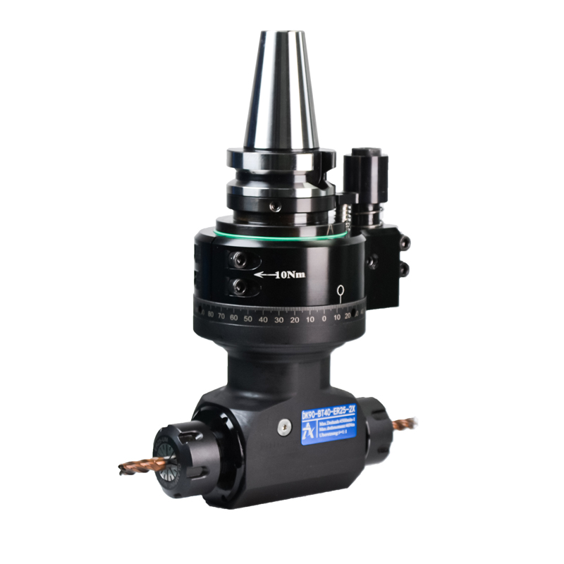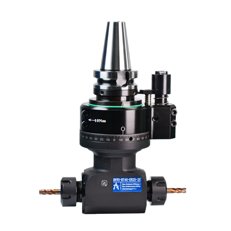 蘇州刀克精工科技有限公司研發(fā)設(shè)計的BT40-ER25-2X角度頭,側(cè)銑頭采用雙向輸出,且雙向的同心精度、垂直精度較佳,可以很好地解決使用者在需求高精度時手動轉(zhuǎn)角度、打表校正的麻煩,避免重復(fù)誤差,提高生產(chǎn)加工效率和精度。