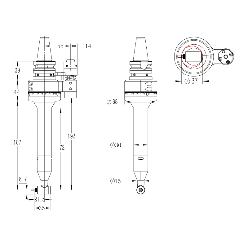 蘇州刀克精工科技有限公司設(shè)計(jì)研發(fā)的BT30-3RAL加長微型側(cè)銑頭,在原標(biāo)準(zhǔn)微型側(cè)銑頭的基礎(chǔ)上增加了長度,可以滿足客戶在狹窄的深孔內(nèi)打孔,銑槽,攻絲。